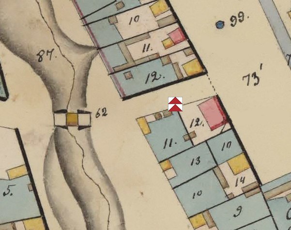 См. старую карту. Деревянная пристройка в отмеченном месте.